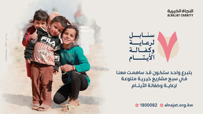 الأيتام من الفئات التي أولتها جمعية النجاة الخيرية نصيبا كبيرا من اهتمامها؛ لما لها من فضل عظيم وثواب كبير في ديننا الإسلامي الحنيف