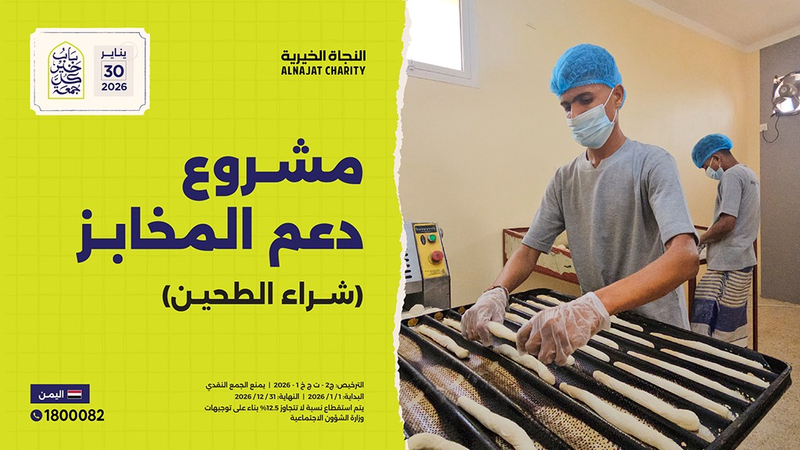 مشروعنا لهذه الجمعة المباركة مبادرة لتوفير الخبز و‏الصمون للأسر الفقيرة المتعففة والأيتام والأرامل في اليمن وذلك من خلال دعم المخابز التي تم إنشاؤها وبلغت (20) مخبزًا.. حيث يخفف هذا المشروع العبء عن تلك الأسر التي لا تجد قوت يومها ويعيشون حياة صعبة بسبب الأوضاع الاقتصادية في اليمن.
