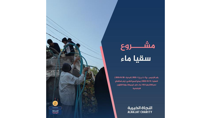 ساهم ولو بدينار… فربما تروي عطش محتاج، وتكتب لك صدقة جارية لا تنقطع. تكلفة المشروع 12 دك "